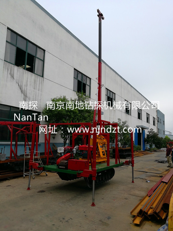 該履帶底盤承載重量達4T,可以裝載各種小型鉆機,如:XY-1-1、XY-1、XY-1A、XY-1A(YJ)、XY-1A-4、XY-1A-5、XY-1B、XY-1B-1、XY-1B-2、XY-200、XY-200(YJ)、XY-200B、XY-200B-1、XY-200B-2、GXY-1系列、GXY-2Q、GXY-200B、GYQ-200、GYQ-200A、GK180、GXY-2K、GXY-2C等100-300米鉆機,并可同時載BW160、BW160A、BW200或BW200A型泥漿泵,具有伸縮式液壓起落鉆塔、行走方便、上下汽車安全等特點,廣泛適用于公路、鐵路、水電、橋梁、壩基等的工程地質勘察、地質巖芯鉆探、物理勘察、小型灌漿孔、爆破孔、水井孔和空調孔的鉆進。