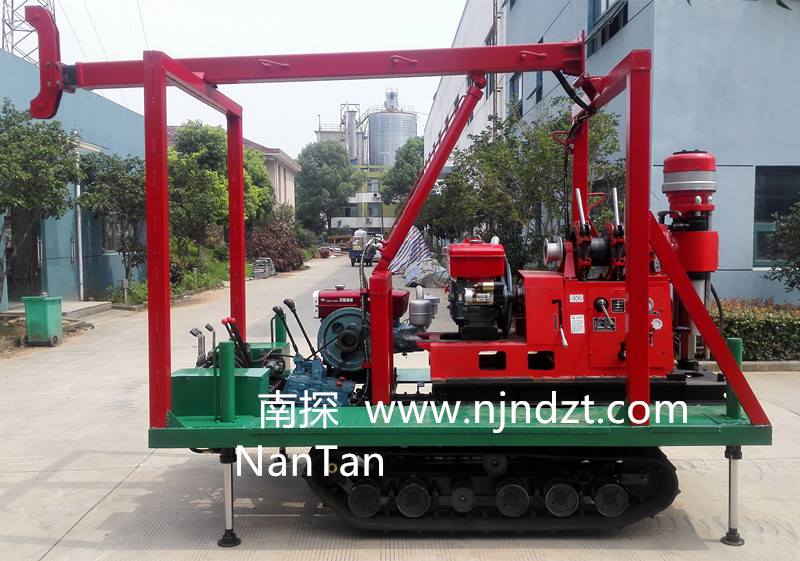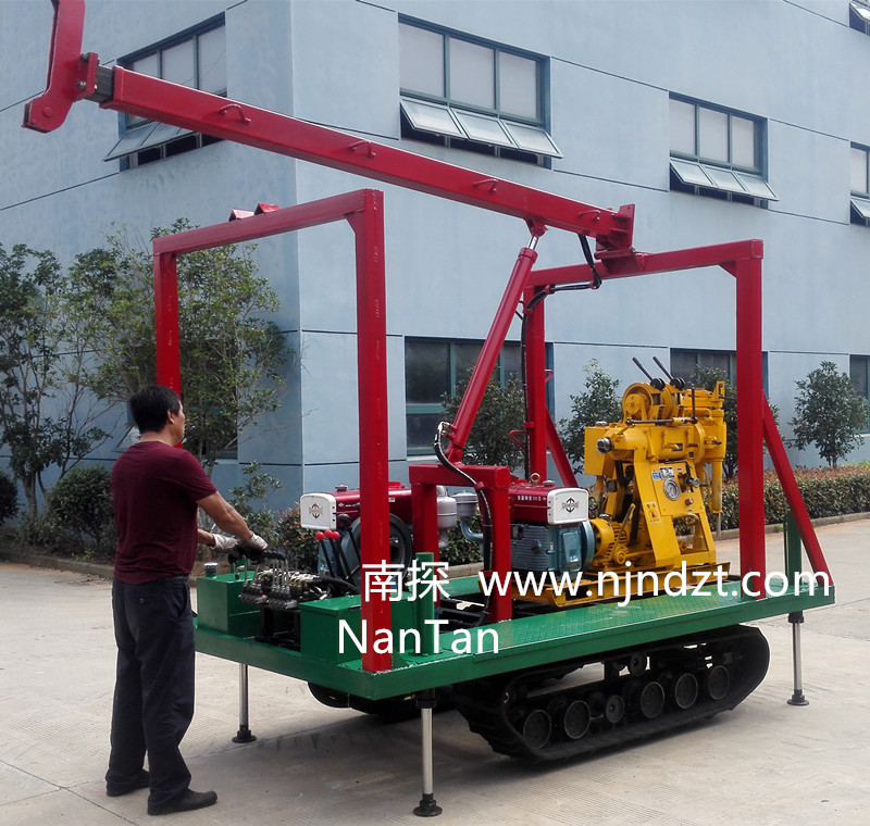 該履帶底盤承載重量達4T,可以裝載各種小型鉆機,如:XY-1-1、XY-1、XY-1A、XY-1A(YJ)、XY-1A-4、XY-1A-5、XY-1B、XY-1B-1、XY-1B-2、XY-200、XY-200(YJ)、XY-200B、XY-200B-1、XY-200B-2、GXY-1系列、GXY-2Q、GXY-200B、GYQ-200、GYQ-200A、GK180、GXY-2K、GXY-2C等100-300米鉆機,并可同時載BW160、BW160A、BW200或BW200A型泥漿泵,具有可調伸縮式液壓起落鉆塔、行走方便等特點,廣泛適用于公路、鐵路、水電、橋梁、壩基等的工程地質勘察、地質巖芯鉆探、物理勘察、小型灌漿孔、爆破孔、水井孔和空調孔的鉆進。